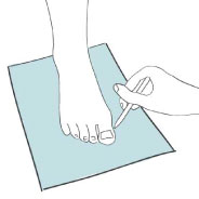 Draw around the top of their foot with a pen or pencil. Repeat for the other foot, as they could measure differently.